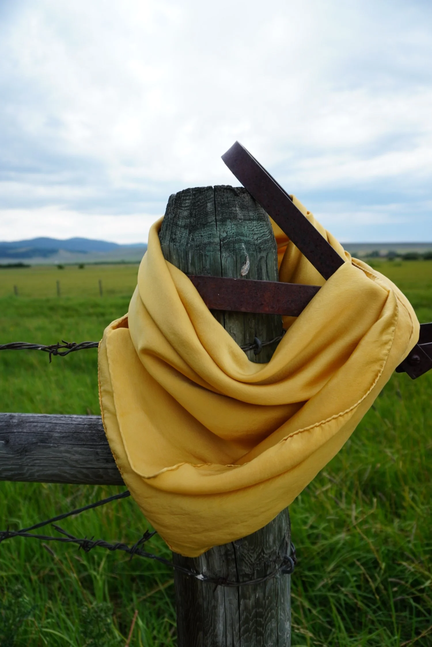 • While I only use dyes that are known to be color fast - meaning they hold their color, your wild rag may change over time, depending on the dye. Some dyes will fade, while others may shift and pull different hues. To minimize or slow changes to your rag over time, it is best to store the rag out of direct sunlight, and to only wash when needed, following the care instructions above. Silk does not require frequent washings. I wash mine less than once a year. Changes may also occur to the hue if it is exposed to a different pH. This includes anything particularly acidic (such as citrus), laundry detergents with scents, etc.