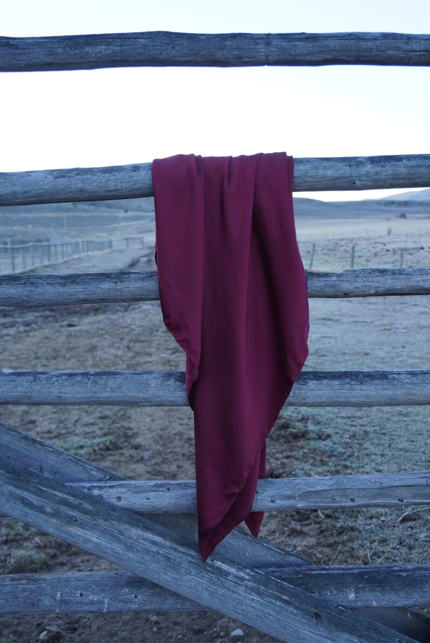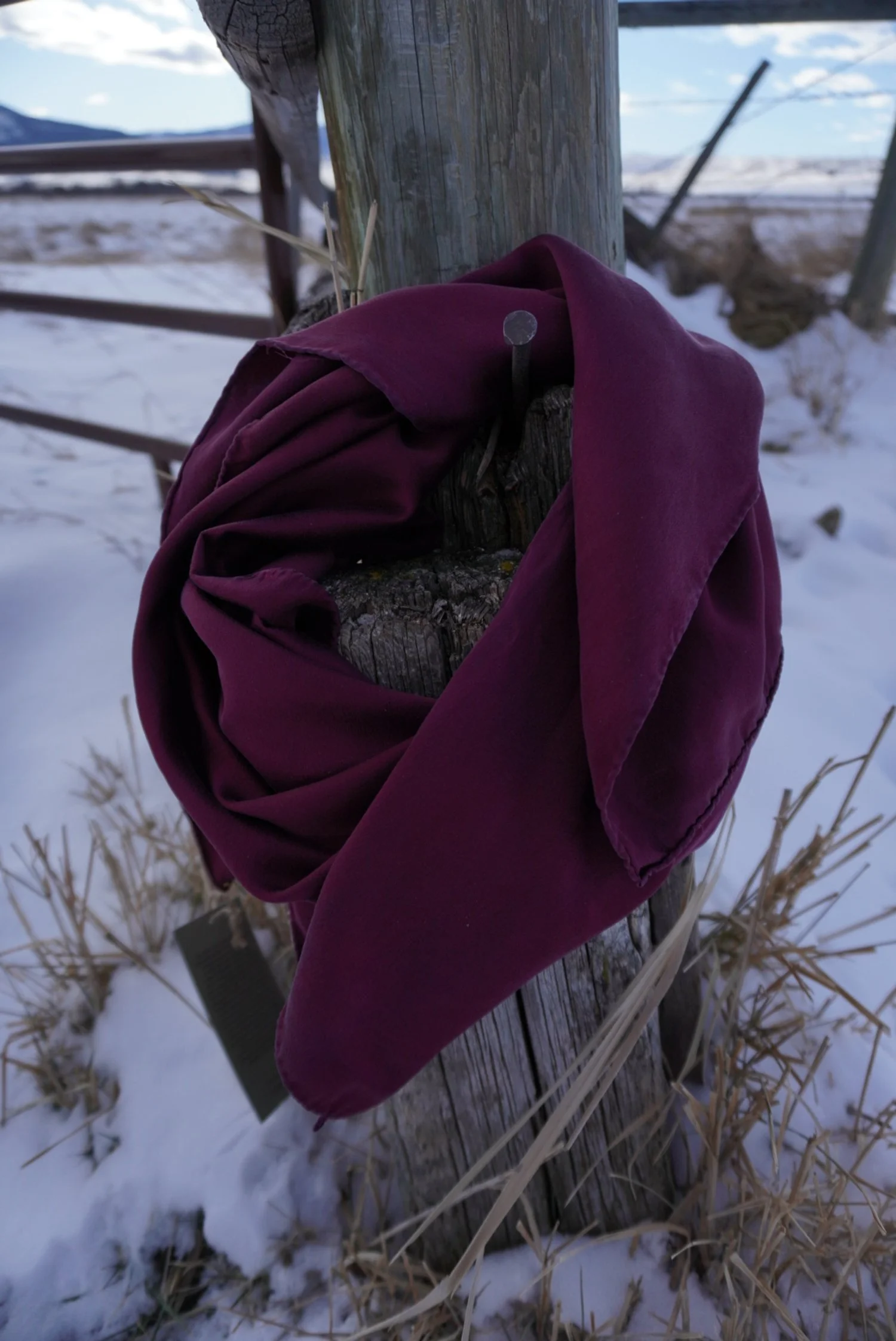 Scarves are 44”x44” and 19 mm silk charmeuse with a hand sewn hem.
