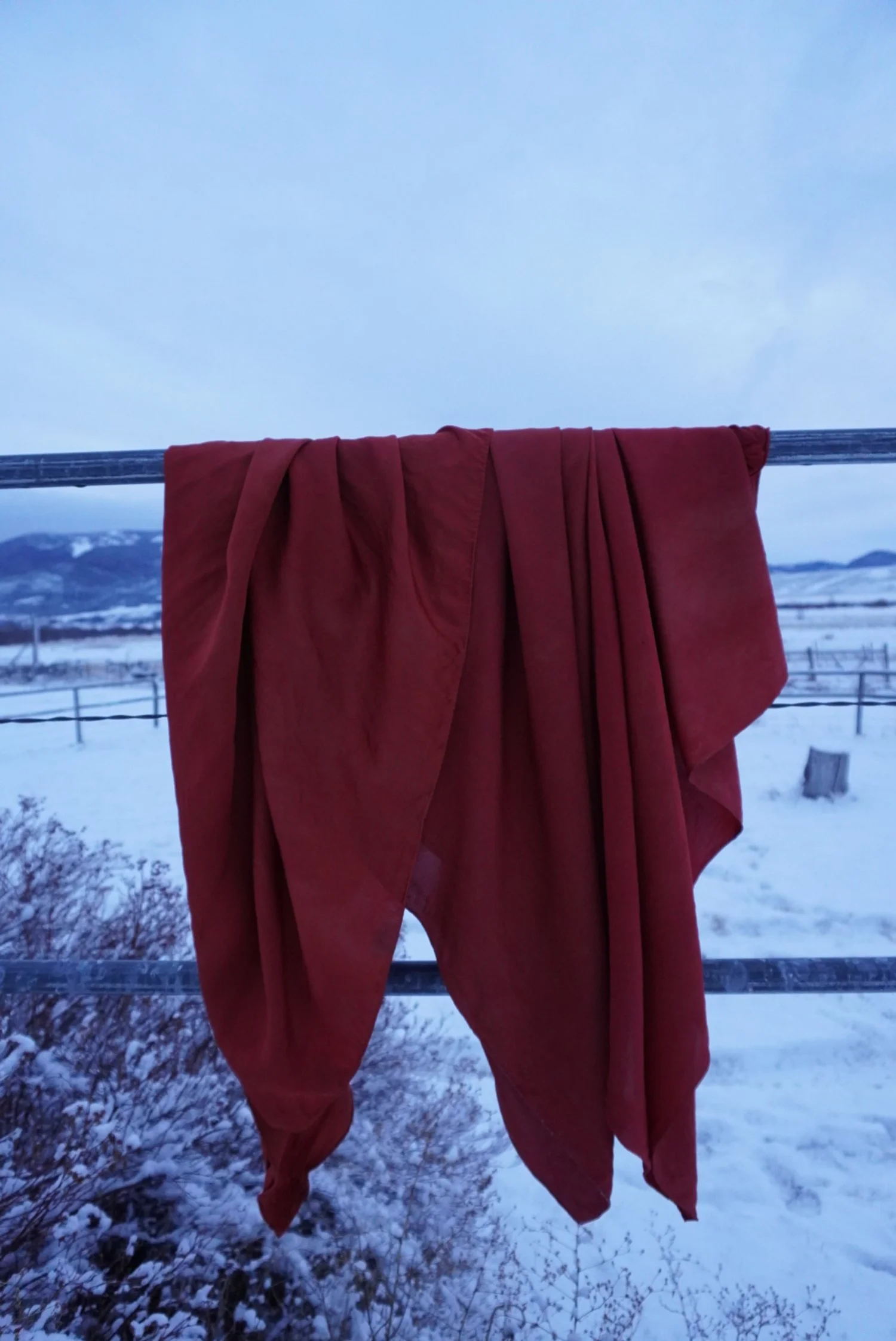 Natural dyes are living, dynamic hues. They are sensitive to prolonged sunlight and frequent washing. To enjoy the vibrancy of your colors for as long as possible, I recommend storing your wild rags out of direct sunlight and only washing when necessary. Best practice is to hand-wash with cool water and a pH neutral, liquid soap. These rags will evolve over time, just as we do. If you have any questions about wild rag care, please reach out.